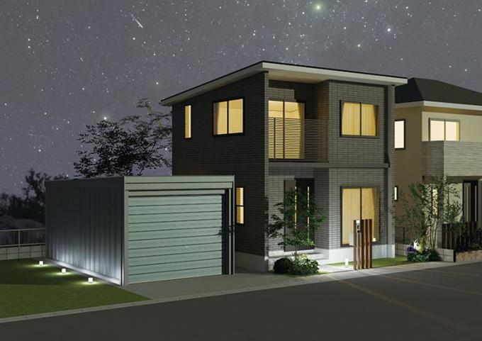 既存ガレージ・倉庫をベースに、外観色はシックなマット調のアイボリーブラック色を施し、意匠は洗練された前化粧デザインへとリニューアルしました。