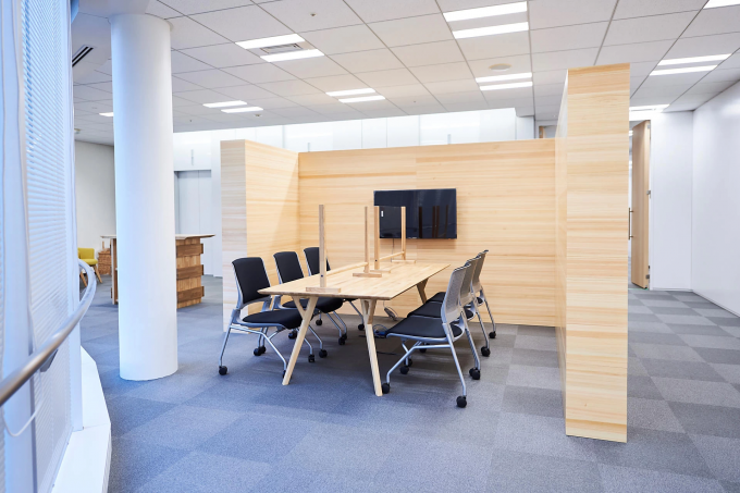 テレワークなどによるワークスペースの多様化に伴い、リラックスして働ける空間作りを目指し、木を生かしたオフィスのトータルプロデュース事業に力を入れています。