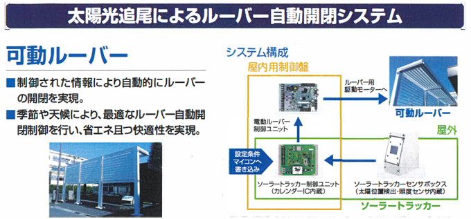 ルーバーはタテ型・ヨコ型で電動モーターで駆動し、制御は365日対応のプログラムにより自動で行います。