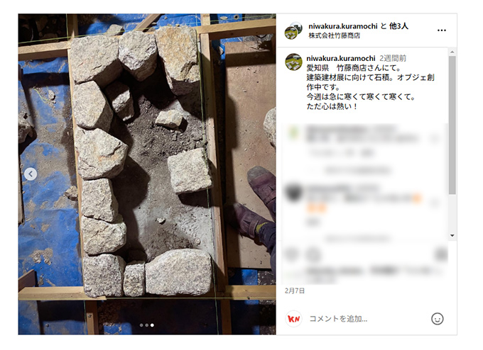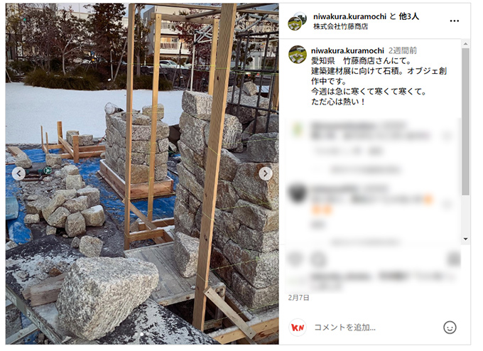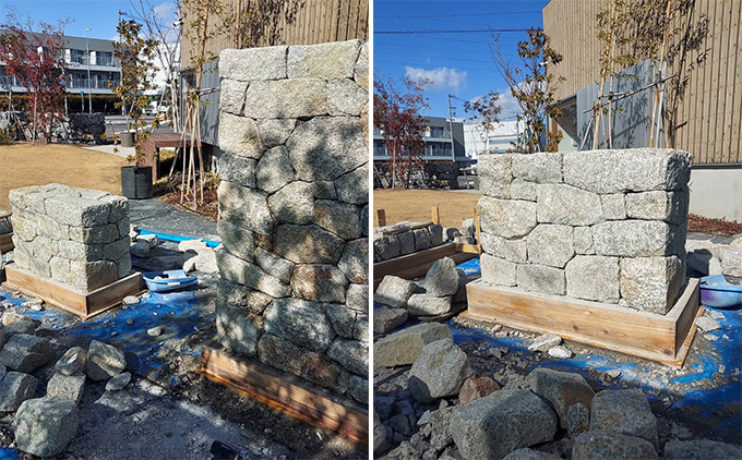 今回の展示では、小豆島より導入の花崗岩を、数寄積みの考案者である鈴木庭苑・鈴木富幸氏により野面積みにした作品も展示します。どちらも卓越した職人の技により、石の持つ魅力と可能性を存分に感じていただけます。