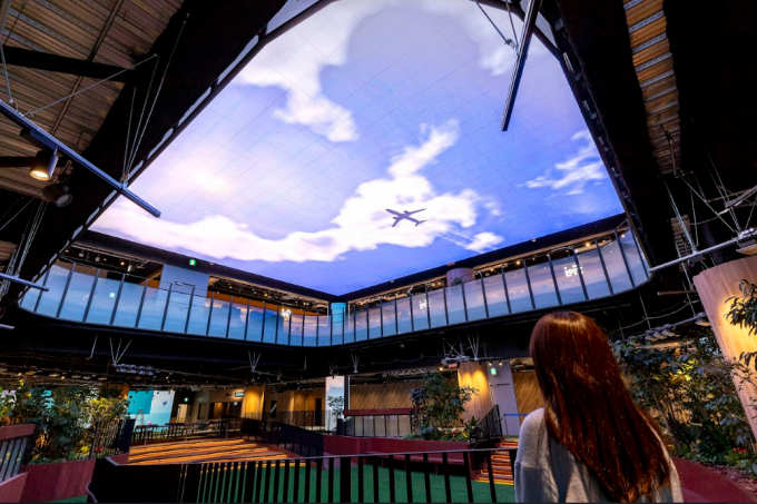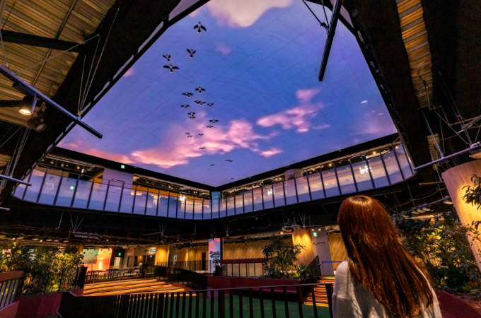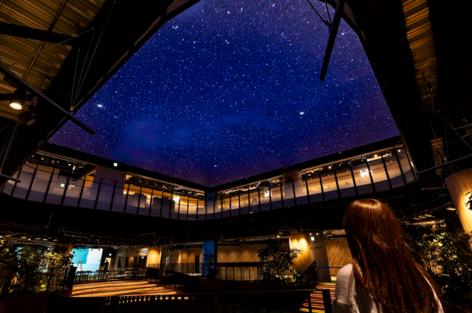 青空、夕暮れ、星空。時間と連動させて、訪れる時間帯によっては、別の空間として楽しめる演出になっています。