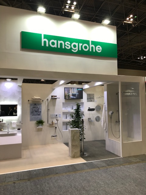 ▲ハンスグローエジャパン株式会社様のブースでは、ホテルや旅館に欠かせないシャワー製品が勢揃いでした。くつろぎの浴室空間に合う、様々なパターンのシャワーが展示されていました。