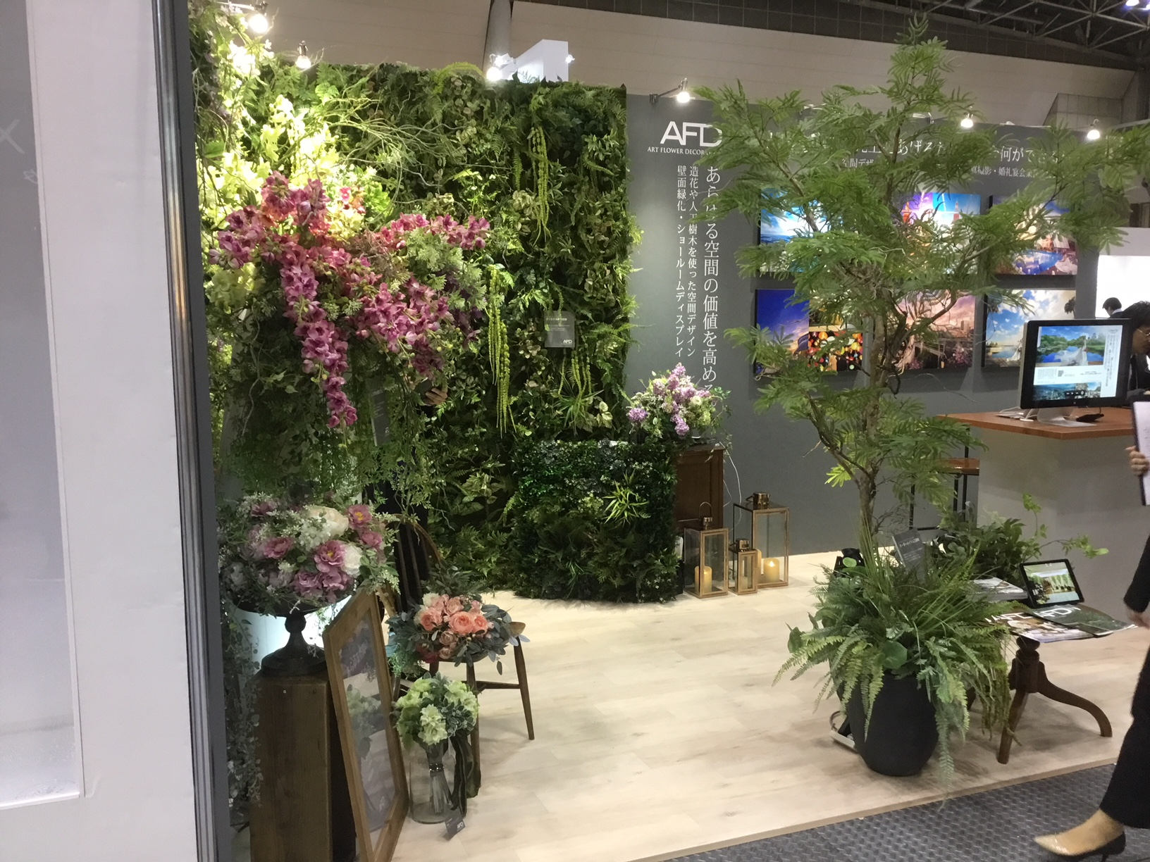 ▲株式会社ジェック AFD事業部様のブースは、優しいグリーンで埋め尽くされた壁面装飾がただただ美しく魅力的で、緑に溢れたブースがとても心地よかったのは言うまでもありません🍃