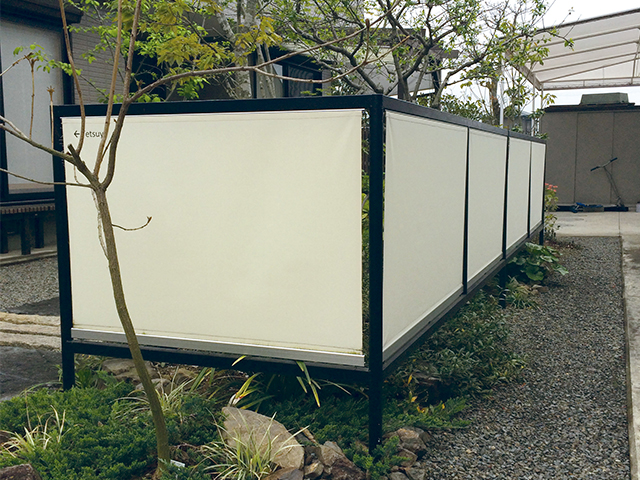 住宅テラスの目隠し用テントシート、店舗や倉庫等の建物の壁面の看板、サインシートの設置事...