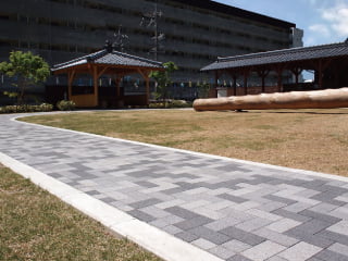 K-グランド(CO)瓦コンクリートは保水性に優れた舗装材です。夏場の路面温度上昇を抑える効果...