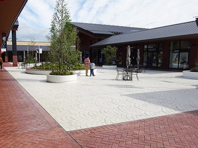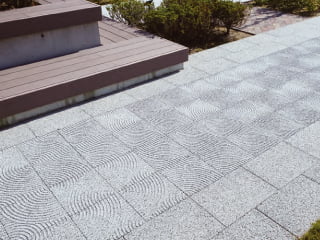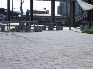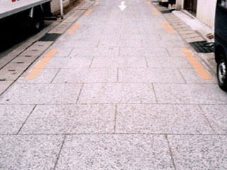 ショットブラストと目地切りにより路面を御影石調に仕上げる、景観性に優れた保水性舗装です。
