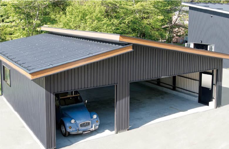 ガレージ・倉庫専門メーカーとして製造・販売・施工・アフターサービスまでを一貫して行っています。ガレージ・倉庫は、お客様との販売・施工・アフターを通じて、ご要望をお伺いしながら、浅間山を望む長野県東御市にある10万㎡の自社工場で製造しています。