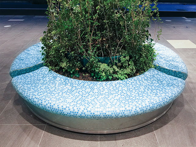 EPSを躯体としたモザイクタイル貼りの特注タイルベンチを製作いたします