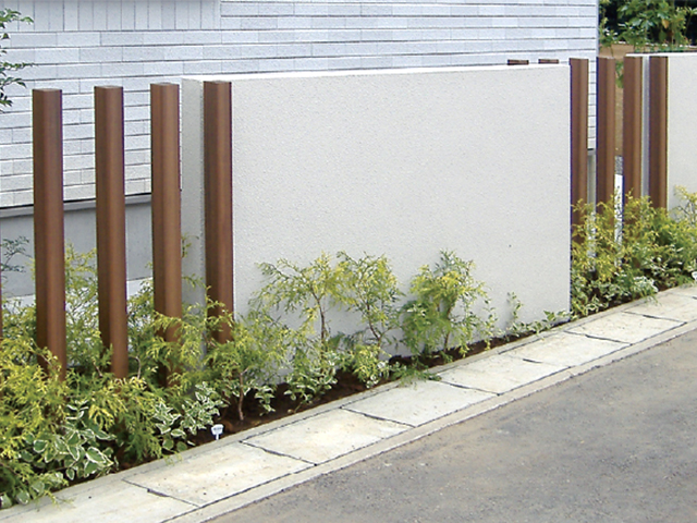 スマート F-ウォールには、壁や塀の側面にユニット角門柱を取り付けることもできます。 ■お...