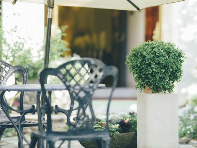 限りなく本物に近い人工植物で、手入れの少ない庭を実現。