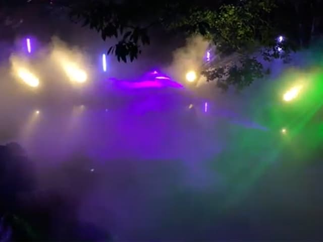 庭園にミストを発生させレーザースポットやパーライトを使って演出をしました。 霧の中に浮か...