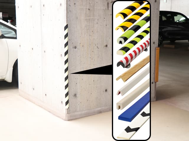 安全クッションのバンパープロは、さまざまな形状があり、角部だけでなく、円形の柱やポール、平面にも取り付けが可能です。