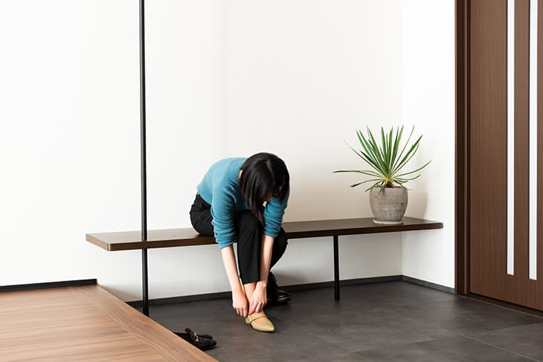 玄関で靴を脱ぎ履きする動作は、足腰に負担がかかります。特に高齢の方にとっては辛い体勢になることが多く、ロングブーツを履く方にとっても玄関で座り込む必要があり、面倒な動作は極力排除したいという需要がありました。