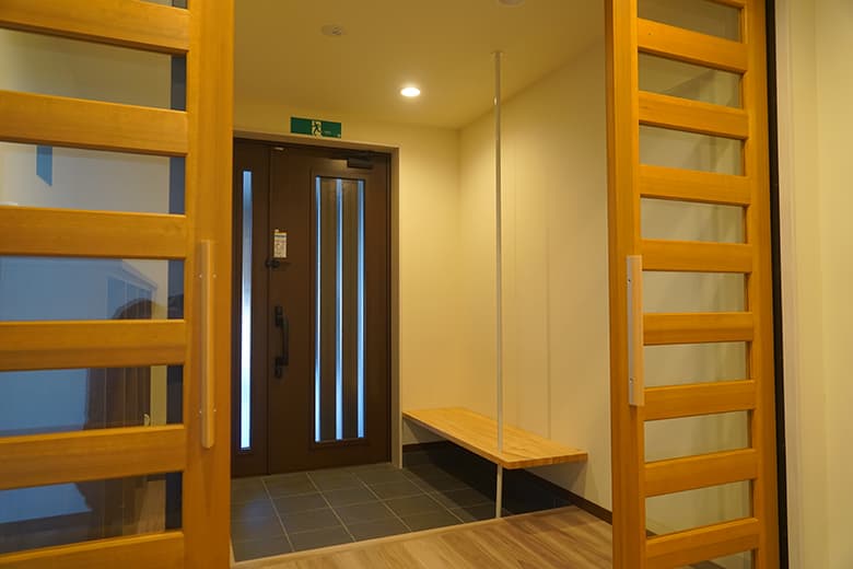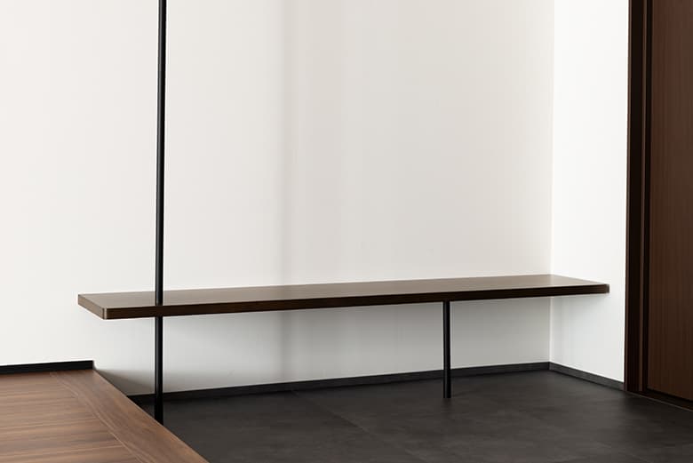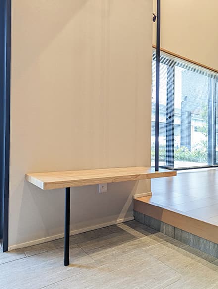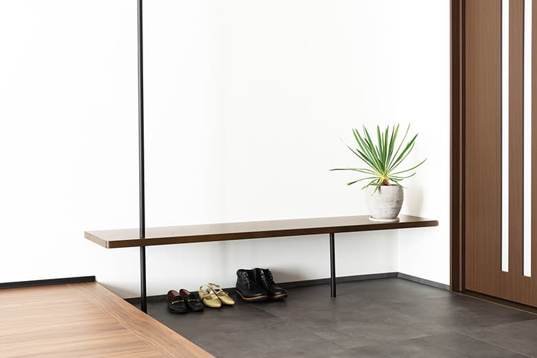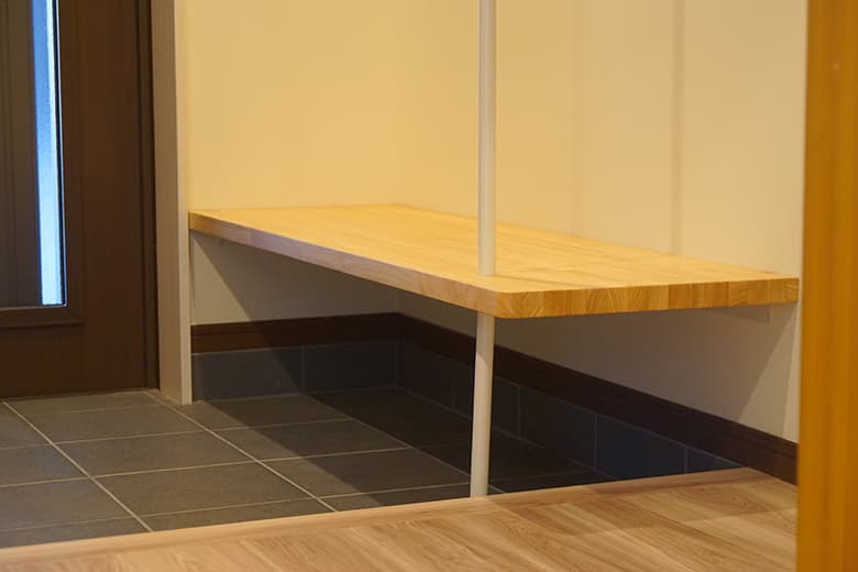 玄関にベンチを置くことで、脱ぎ履き動作の負担を軽減させるとともに正しい靴の履き方が浸透する一助になればと考えています。