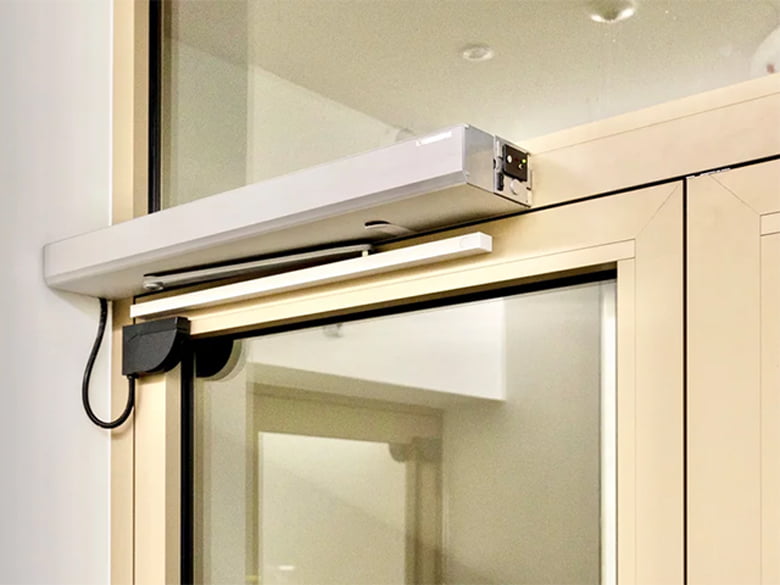 大型のドアでも取り付けが可能。起動速度、開閉角度、開放保持時間などお客様に合わせた様々なカスタマイズが可能です。