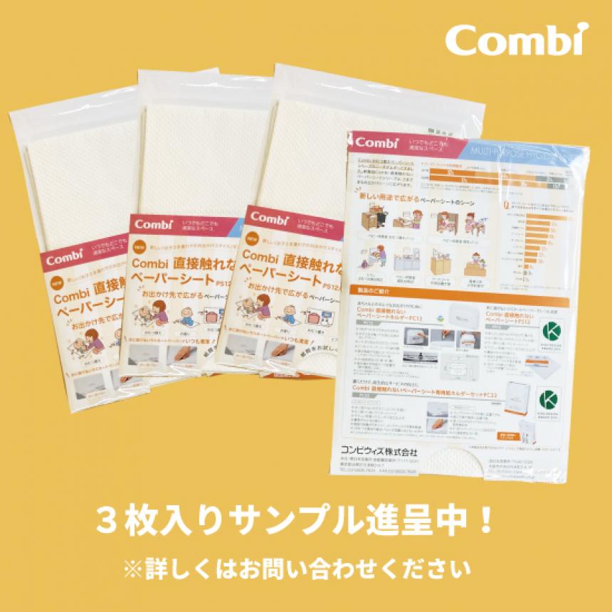 「Combi 直接触れないペーパーシートPS-12」3枚入りのサンプルを進呈しております。