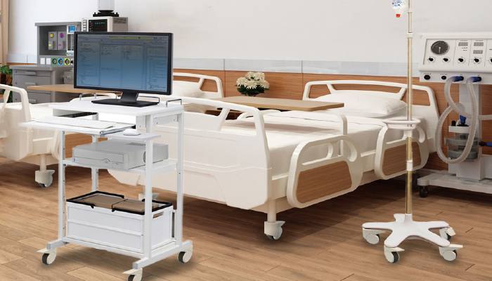 キャスターとは、家具や什器に取り付けることで移動を楽にする、小さな車輪のことを指します。車輪と本体、取り付け金具が一体になっていて、複数で使用します。車輪には単輪タイプと双輪タイプがあり、台車など移動の多い什器には単輪、移動の少ない家具などには双輪が向いています。