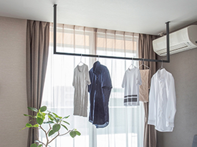 デザイン性だけでなく、使いやすさにもこだわった、物干しとハンガー。