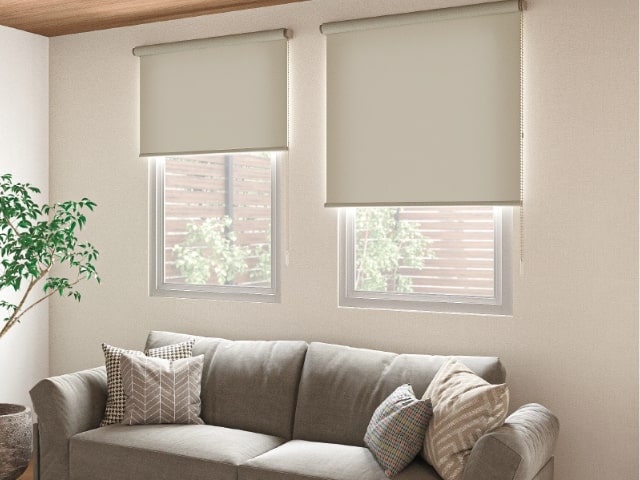 ロールスクリーンはスクリーンを上部のローラーパイプに巻きとるためすっきりとした納まりに...