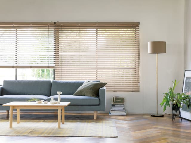 木製横型ブラインド こかげ(ベネチアウッド50)。最大の特徴である天然木の風合いは部屋全体を...