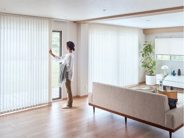 リビングで過ごす時間を快適にしてくれるバーチカルブラインドです。