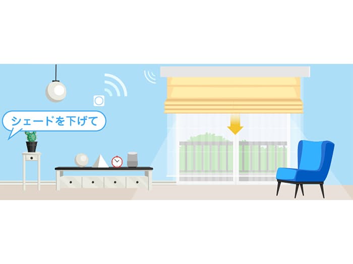 IoTデバイスとして活用できます。 スマホや音声などで、ローマンシェードを楽々開閉