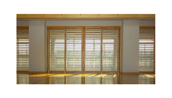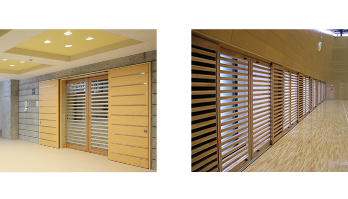 ■「木の優しい風合い」と「アルミの強靭さ」を備えた新しい防球格子建具。