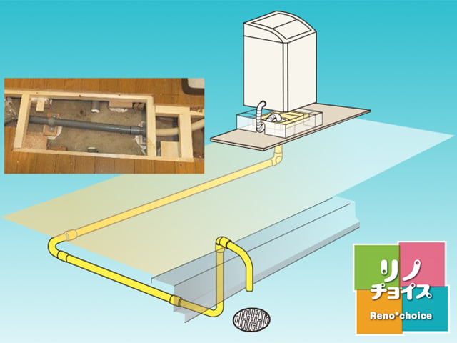 ミニ防水パンと排水管特殊継手のキットで、不便だった間接排水を直接排水に!