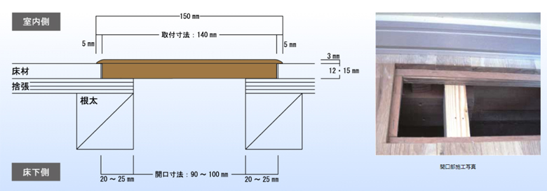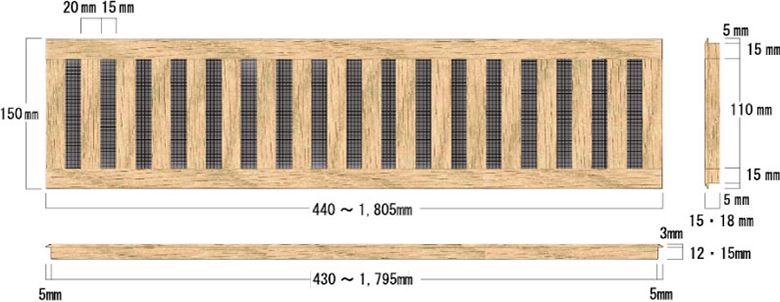 北海道産の木材・堅木を使用した木製ならではの質感をもったセミオーダー床下ガラリ