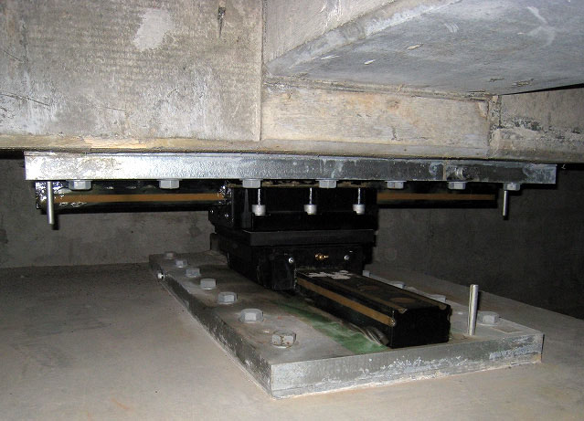 ■「THK免震システム」は、THKの主力製品であるLMガイドやボールねじを応用した地震から建物を守る免震装置です。