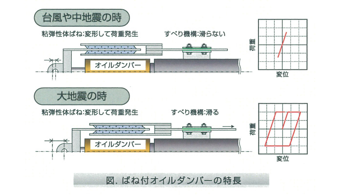 ■制振用オイルダンパーに粘弾性体ばねとすべり機構を組み合わせることによって、剛性と減衰性を備えた制振装置です。