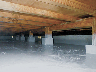床下土壌面に皮膜を作り、湿気とシロアリを同時に防ぐ