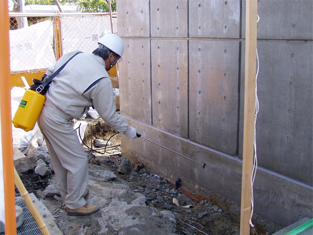 床下土壌面に皮膜を作り、湿気とシロアリを同時に防ぐ