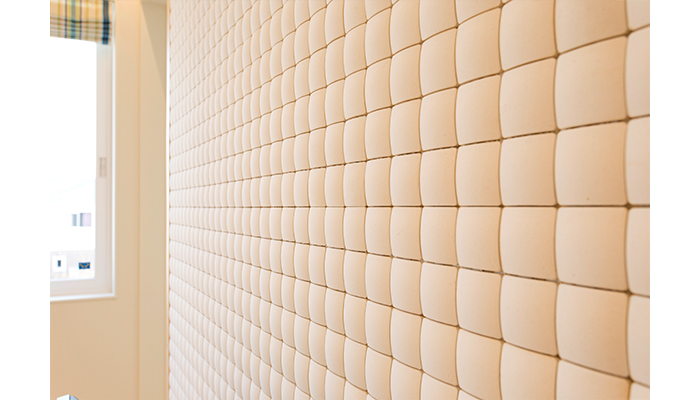 重量は通常のタイル約1/2と超軽量のため、リフォームの際にも、既存の壁紙の上から施工できます。