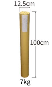 荷姿はΦ12.5×100cmの円柱型で7kgです。