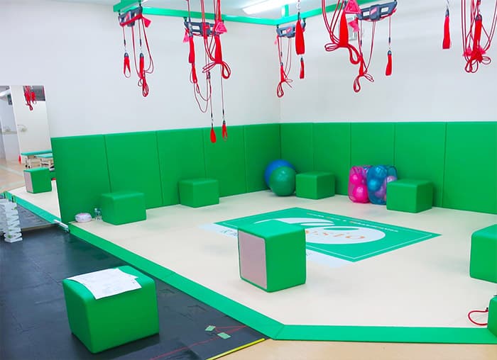 病院や介護施設の運動やリハビリスペースにオーダーサイズで設置可能な床クッションマット。