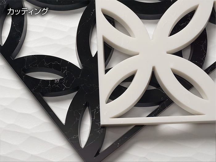 天然石では加工しづらい切文字や図形のカットも容易です。