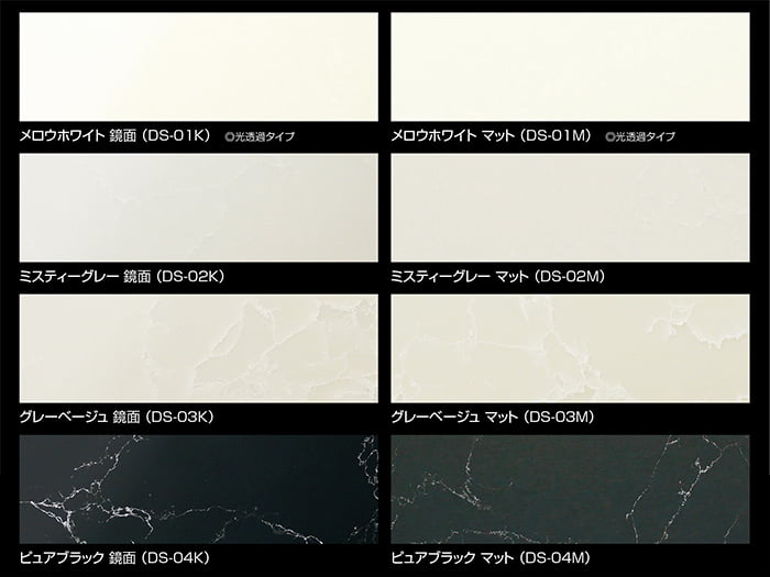 ※ピュアブラック鏡面(DS-04K)は、屋外使用時にツヤが落ちる場合があります。