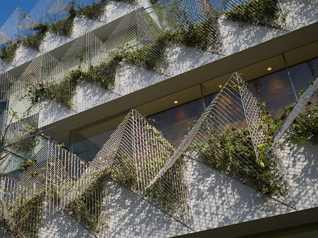 外部からの熱を遮断、CO2削減などの緩和に役立つ壁面緑化システム