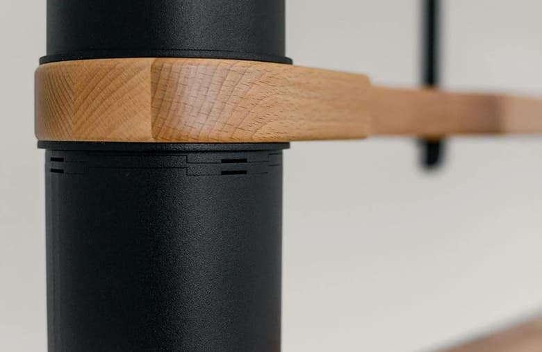 ステップはブナ材、金属部分は黒、グレー、白の粉体塗装