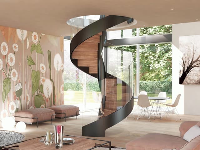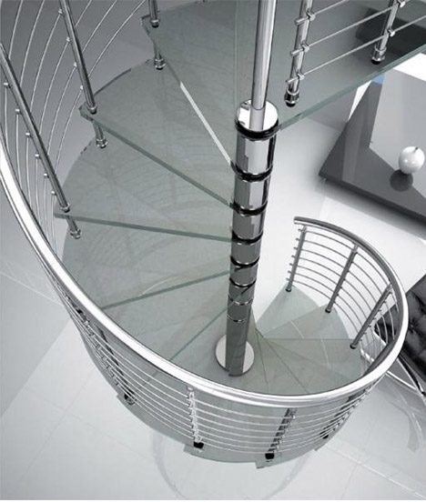 クロム鋼x強化ガラス_ユニークで洗練された螺旋階段モデル