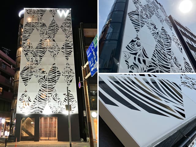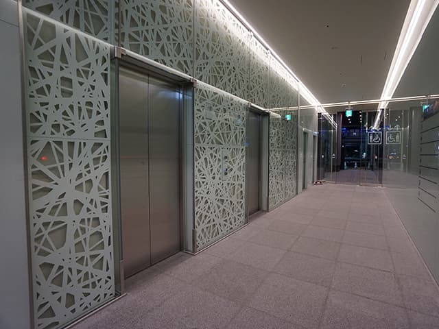穴が、空間に光とリズムを生む─美しく透けるアルミの有孔パネル