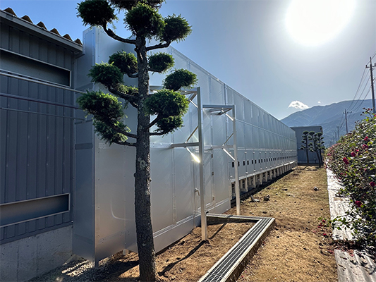 使用する吸音材は耐熱・耐水性です。室内・外共にご使用いただけます。
