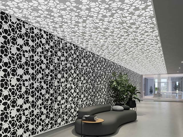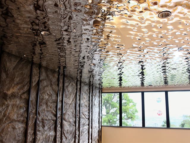 装飾金網メッシュ・アイアン装飾・ポリカディスプレイなど、空間に美しいアクセントを加える装飾材を多数展示しています。
