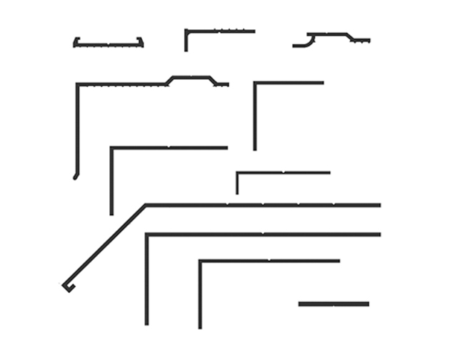防水層の端末押さえや端末の保護に有効なアルミ製品、様々な納まりに対応出来るよう多くの防...