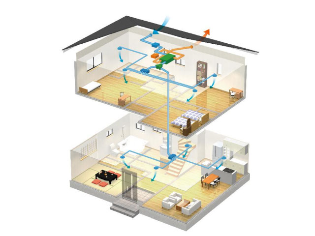 <24時間換気システムとは> 居室の空気を機械式ファンを使い計画的に入れ替え、常に新鮮...