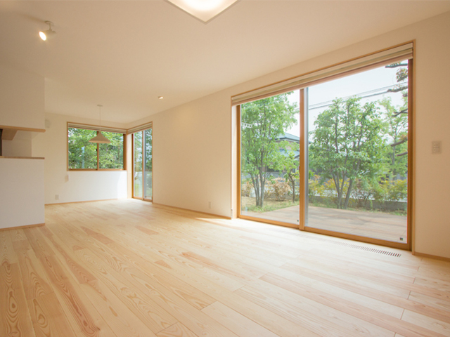 ■本物の杉のフローリングは素足でも夏はひんやり冬はあたたかか、一年を通じて快適に過ごせま...
