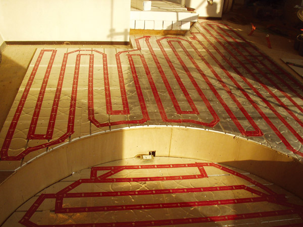 床暖房システムとしては、一般的にはモジュール化されたパネルタイプが主流かと思います。こういったタイプは比較的広く、整形の平面形状の部屋では都合が良いのですが、不整形な平面形状や、造り付けの家具を除けてのパネル設置は、敷設率が極端に低下してしまいます。また、モジュール間の温水配管の接続が避けられないため、少なからず将来的な漏水が懸念されます。