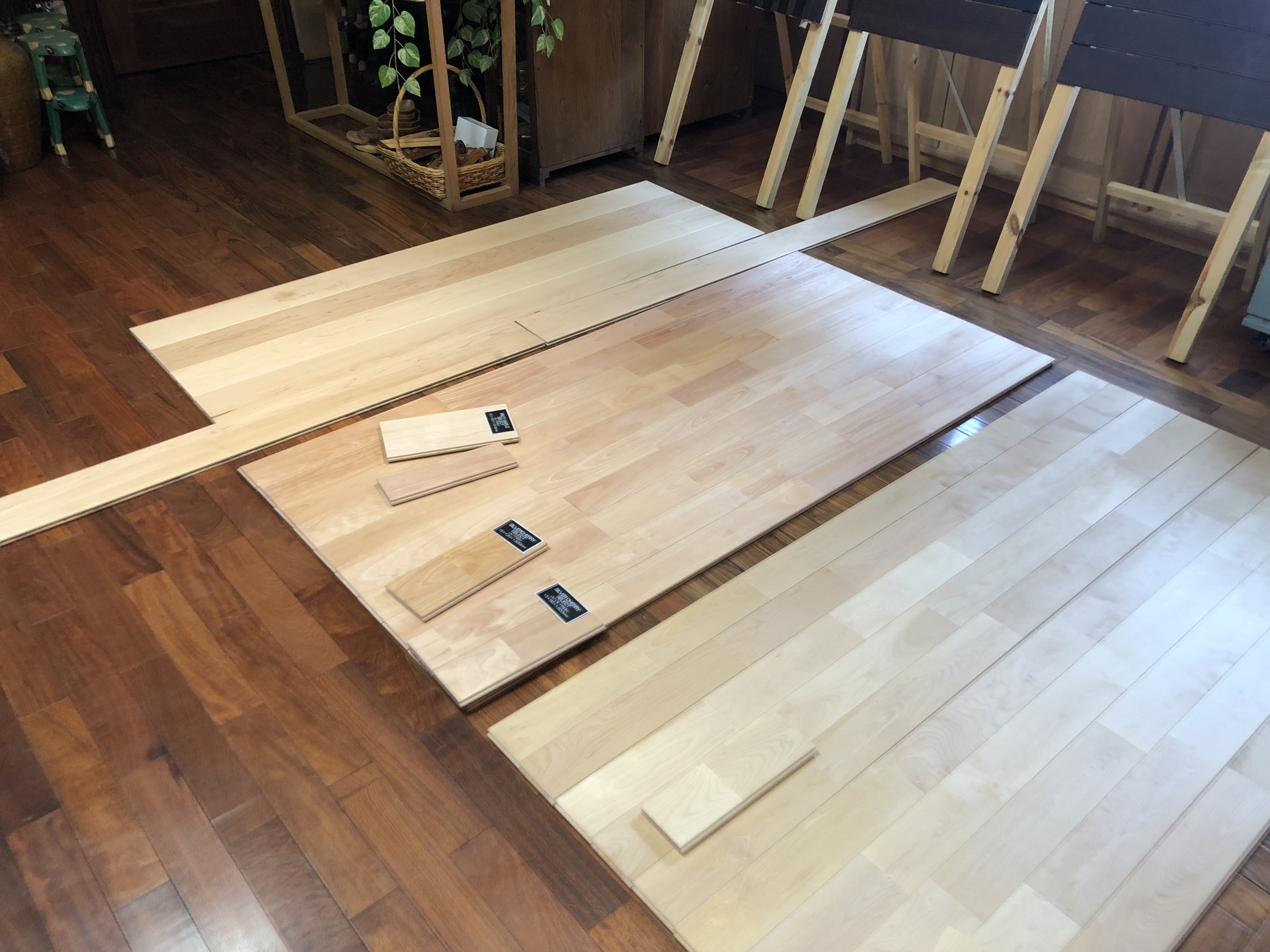 事前に使いたいフローリングをいくつか伝えショールームにお伺いすると、フローリング一畳くらい並べて用意していただき見ることができたので、イメージが湧き決めるのが楽でした。東京からですと、場所が少し離れたところになるのですが、採用を検討される方は一度見に行く価値があると思います。