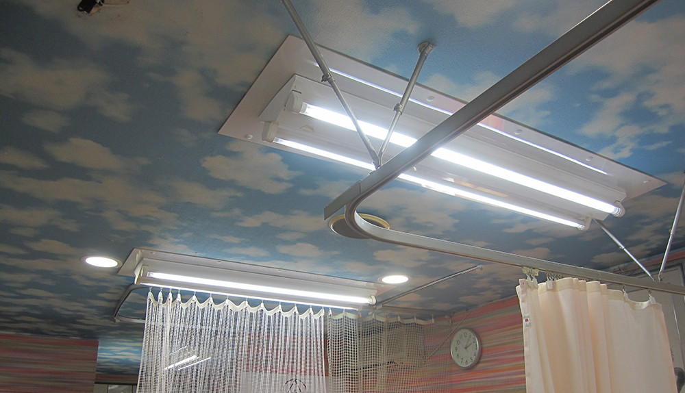 コロナ対策をお探し中だった柴田接骨院様は、建材ナビのサイトで当社製品を見つけていただきました。ご検討後に採用していただき、来院の患者様に安心感をもたらしていると伺い嬉しい限りです。新型コロナウイルス感染症の5類感染症移行後、拭き消毒をする事が少なくなり、空気清浄機も、浮遊菌にしか効果がありません。しかし、抗菌照明は、点灯するだけで、部屋全体を均等に、浮遊菌・付着菌などを死滅させる効果を発揮し続けています。また、仰向けになって治療をする場合には、LED照明と違い、CCFL照明は眩しさがなく、目に優しい事から落ち着いて治療にあたることができると思います。